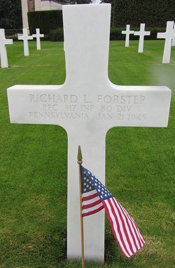 Pfc Forster enlisted in Cumberland, Pennsylvania on 27 March 1944 and trained at Camp Blanding, Florida. He went overseas on 23 September 1944.