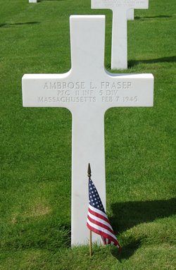 Pfc Ambrose L. Fraser enlisted at Ft. Devens, Massachusetts on 7 June 1944.He attended 2 years of high school and was associated with his father in the general construction business.