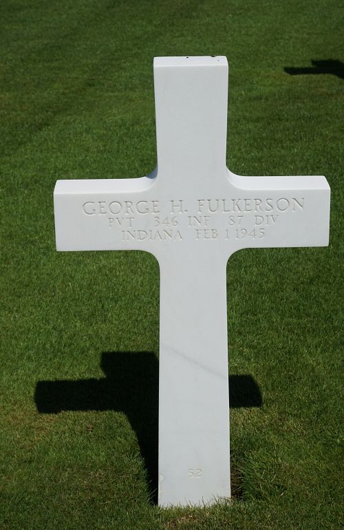 Pvt George H. Fulkerson was employed by the Crown Pottery Company before he enlisted in Evansville, Indiana on 22 January 1944. He was sent overseas on 8 October 1944.Source of information: Peter Schouteten, www.abmc.gov, www.wwiimemorial.com, www.archives.gov - WWII Enlistment Record, www.ancestry.com - Headstone and Interment Record / U.S. WWII Draft Cards Young Men, http://87thinfantrydivision.com, www.findagrave.com, www.newspapers.com - The Boonville Enquirer - 23 February 1945