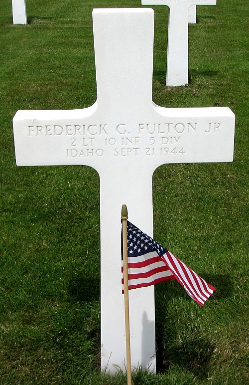 2nd Lt Frederick G. Fulton Jr. graduated at Lewis and Clark High School in Spokane, Washington and attended 3 years of College before he enlisted in Spokane, Washington on 27 February 1943.Source of information: Leo Minne, www.abmc.gov, www.wwiimemorial.com, www.archives.gov – WWII Enlistment Record, www.ancestry.com – 1920/1930/1940 Census / Headstone and Interment Record / Nelson Family Tree, A footsoldier for Patton / Michael C. Bilder James G. Bilder, The 5th Infantry division in the ETO