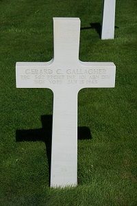 Pfc Gerard C. Gallagher attended high school for 3 years and worked in the manufacture of miscellaneous products before he enlisted in New York City, New York on 6 March 1943.He was first buried at Temporary American Military Cemetery Grand Failly, France.