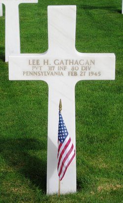 Pvt Lee H. Gathagan was a mechanic before he enlisted in Harrisburg, Pennsylvania on 31 August 1944.He was reported seriously wounded in action on 27 February when C Company was holding defensive positions in the vicinity of Wiersdorf, Germany.
