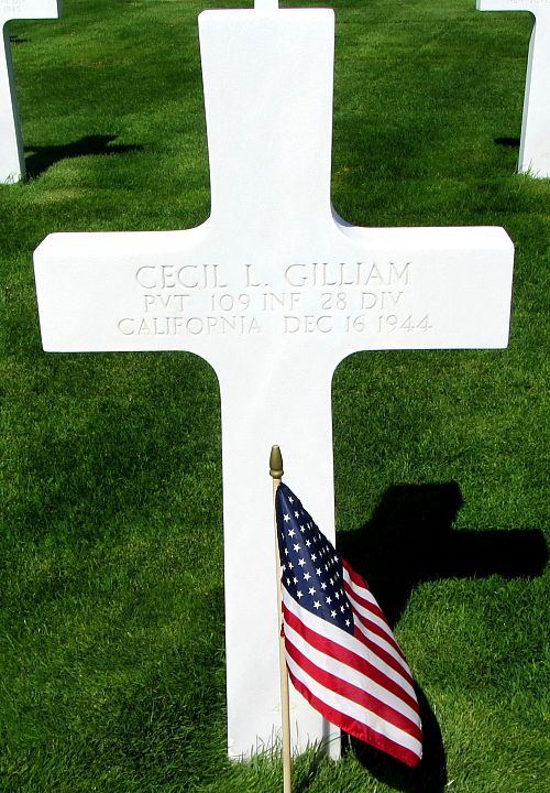 Pvt Cecil L. Gilliam was a painter before he enlisted in Los Angeles, California on 20 March 1943.Source of information: Peter Schouteten, www.abmc.gov, www.wwiimemorial.com, www.archives.gov - WWII Enlistment Record, www.ancestry.com - Headstone and Interment Record / U.S. WWII Draft Cards Young Men, www.findagrave.com