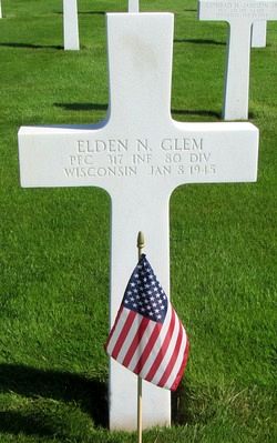 Pfc Elden N. Glem worked as a hired hand on a farm.Source of information: Leo Minne, www.abmc.gov, www.wwiimemorial.com, www.ancestry.com - 1920/1930 Census / Headstone and Interment Record / U.S. Draft Cards Young Men, www.80thdivision.com