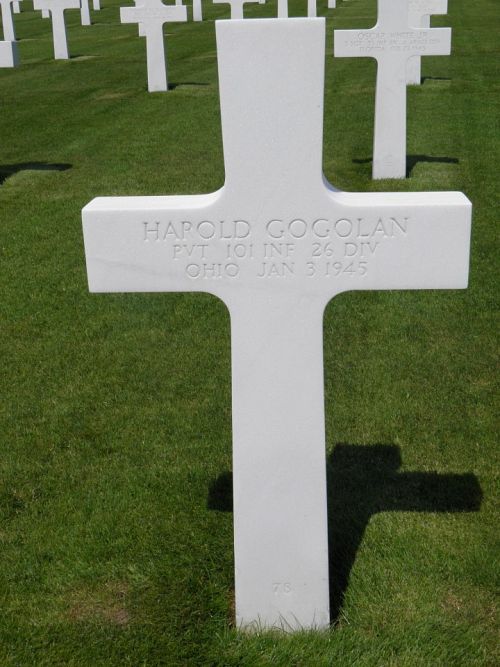 Pvt Harold H. Gogolan graduated from East High School in 1938 and was employed at the Weather Head Company.He volunteered for the Army of the United States at Fort Hayes, Ohio on 21 September 1942. He was sent overseas in July 1944.