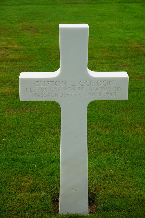 1st Lt Clifton L. Gordon graduated from Haverhill Tracie School as an auto mechanic, class of 1939.He enlisted on 7 July 1941 in the Air Corps and was selected for OCS at Fort Knox, Kentucky. He was commissioned 2nd Lt., Cavalry on 16 January 1943.