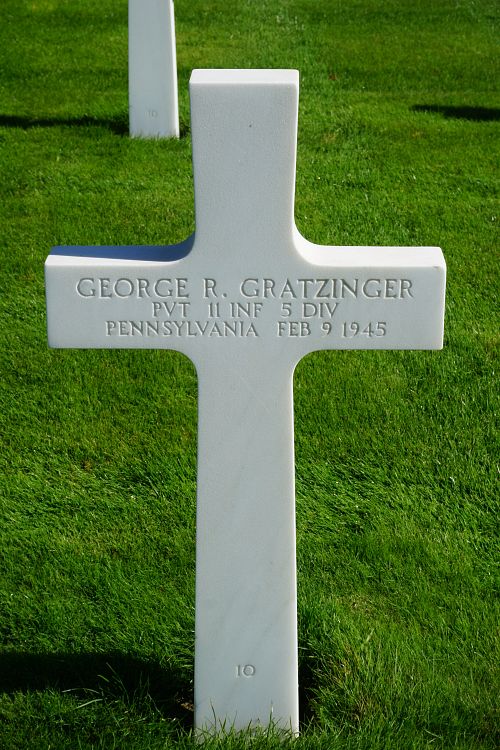 Pvt George R. Gratzinger graduated from East Huntingdon Township High School in 1939 and was employed at Christy Park Works.He enlisted in Pittsburgh, Pennsylvania on 31 August 1944.