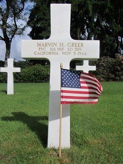 Pfc Marvin H. Greer worked on a farm before he enlisted in Portland, Oregon on 23 October 1943.Source of information: Leo Minne, www.abmc.gov, www.wwiimemorial.com, www.ancestry.com - 1930/1940 Census / U.S. Headstone and Interment Record / U.S. Draft Cards Young Men, www.80thdivision.com