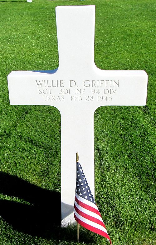 Willie D. Griffin enlisted in 1943.Source of information: Peter Schouteten, www.abmc.gov, www.wwiimemorial.com, www.ancestry.com - Headstone and Interment Record / 1930 Census / U.S. WWII Draft Cards Young Men, http://www.94thinfdiv.com, www.findagrave.com