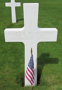 Pvt Kaukoo K. Haapalainen was a machine operator, employed by the Norton Co. before he enlisted at Fort Devens, Massachusetts on 13 August 1943. He was severely wounded by bullets in the abdomen and thumb. He was brought to the 65th Field Hospital in Ettelbruck, Luxembourg where he died of his wounds.Source of information: Leo Minne, www.abmc.gov, www.wwiimemorial.com, www.ancestry.com - 1930/1940 Census / Headstone and Interment Record / U.S. WWII Hospital Admission Card File / U.S. WWII Draft Cards Young Men / Ontario Births, www.80thdivision.com