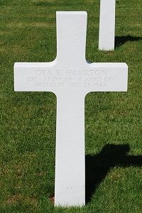 Cpl Ora B. Hamilton enlisted at Ft Leavenworth, Kansas on 28 February 1943.His initial burial took place on Grand Failly Cemetery, Longuyon, France.