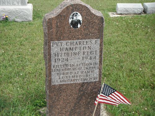 Pvt Hampton is remembered at Whiteman Cemetery in Michigantown, Clinton County, Indiana with a memorial marker.
