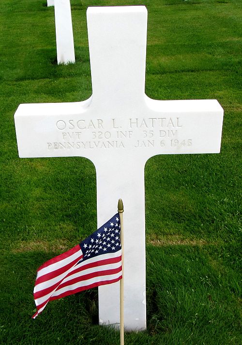 Pvt Oscar L. Hattal worked on a farm before he enlisted in Allentown, Pennsylvania on 18 August 1943.Source of information: Peter Schouteten, www.abmc.gov, www.wwiimemorial.com, www.archives.gov - WWII Enlistment Record, www.ancestry.com - Headstone and Interment Record / U.S. Draft Cards Young Men / Brooks Lenz Family Tree / Pennsylvania Veteran Compensation Application WWII / 1930 Census, After Action Report 35th Infantry Division, www.findagrave.com - MAJ Jimmy Cotton