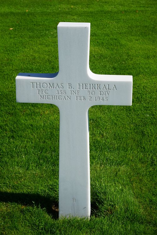 Pfc Thomas B. Heikkala enlisted on 24 January 1944 and went overseas in August 1944.He died from a direct hit from a high explosive shell.
