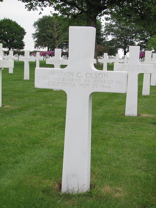 T/Sgt Marvin C. Olson was a lumberman.His father immigrated to the United States from Norway in 1890. His mother's family immigrated to the U.S. from Denmark prior to 1870.