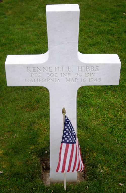 Pfc Kenneth E. Hibbs attended Balboa High School for 4 years before he enlisted in San Francisco, California on 5 January 1943.Source of information: Peter Schouteten, www.abmc.gov, www.wwiimemorial.com, www.archives.gov - WWII Enlistment Record, www.ancestry.com - Headstone and Interment Record / 1930 Census / California Birth Index / U.S. WWII Draft Cards Young Men, http://www.94thinfdiv.com