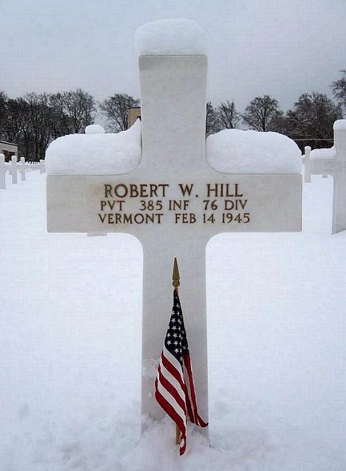 Pvt Robert W. Hill was married to Juliette Adelia Lemieux on 19 April 1944 in Windsor, Windsor County, Vermont.He enlisted at Fort Devens, Massachusetts on 27 April 1944 and received his training at Camp Wheeler, Georgia and Camp McCoy, Wisconsin.