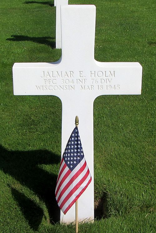 Pfc Jalmar E. Holm enlisted at Fort Snelling, Minnesota on 7 August 1944.Source of information: André Koch, www.abmc.gov, www.wwiimemorial.com, www.ancestry.com - 1920/1930 Census / Headstone and Interment Record / Minnesota Birth Index 1900-1934, http://76thdivision.com/304/history_304th_004.html
