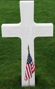 T/5 Gerald E. Horn attended high school for three years and was employed at the Westinghouse Elec. and Mfg Company.He enlisted in New Cumberland, Pennsylvania on 4 April 1942.