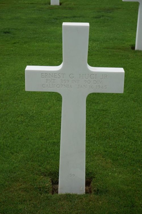 Pvt Ernest G. Hugi Jr. enlisted in Sacramento, California on 23 November 1942.Source of information: Peter Schouteten, www.abmc.gov, www.wwiimemorial.com, www.archives.gov – WWII Enlistment Record, www.ancestry.com - Headstone and Interment Record / Joerger Stewart Family Tree / U.S. WWII Draft Cards Young Men, www.findagrave.com