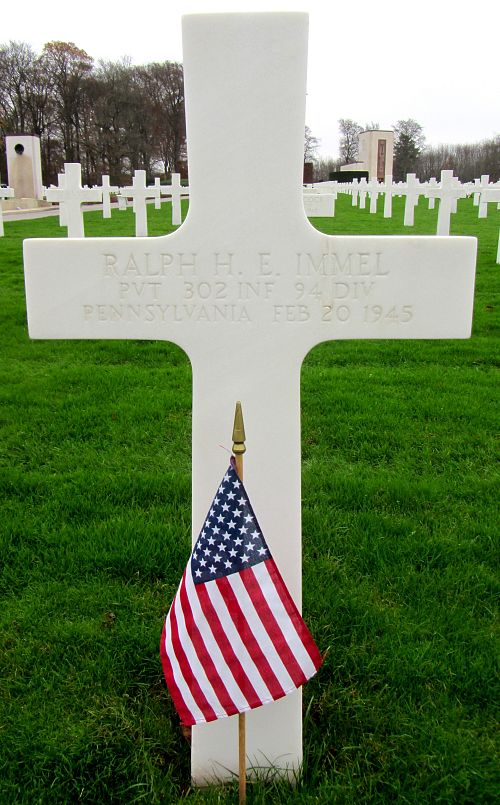 Pvt Ralph H. E. Immel enlisted in Harrisburg, Pennsylvania on 11 August 1944.Source of information: Peter Schouteten, www.abmc.gov, www.wwiimemorial.com, www.archives.gov – WWII Enlistment Record, www.ancestry.com - Headstone and Interment Record / U.S. WWII Draft Cards Young Men, http://www.94thinfdiv.com