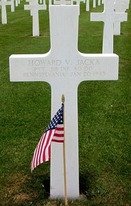 Pvt Howard V. Jacka attended high school for three years.He enlisted in Altoona, Pennsylvania on 6 July 1944 and was sent overseas in December 1944.