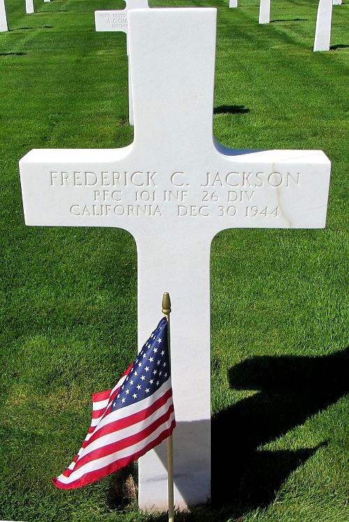 Pfc Frederick C. Jackson volunteered for the Army of the United States in San Francisco, California on 4 February 1942.He died from the blast of an artillery shell.