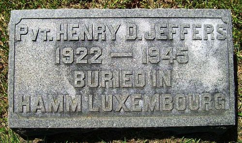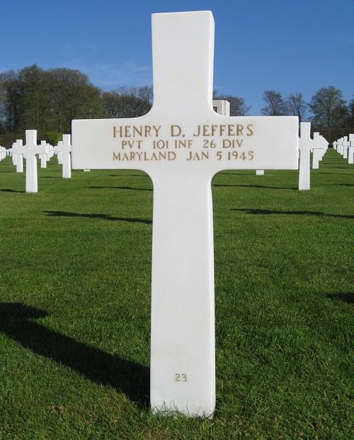 Pvt Henry D. Jeffers attended high school for four years and was employed at the Triumph Explosives Company before he enlisted at Fort George G. Meade, Maryland on 1 March 1944.He is also rememberd at the Elkton Cemetery in Elkton, Cecil County, Maryland.