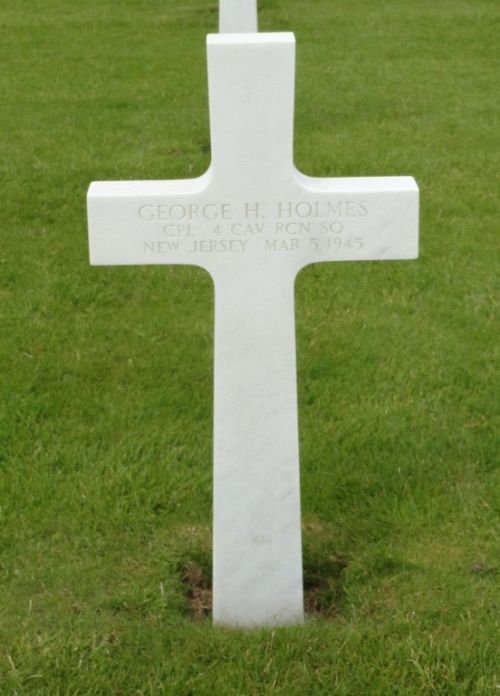 Cpl George H. Holmes served under General Patton and was in Reconnaissance. Wounded once prior to being killed in the Battle of the Bulge.Source of information: Peter Schouteten, Carla Mans, www.wwiimemorial.com, www.ancestry.com - 1930/1940 Census / U.S. WWII Draft Cards Young Men