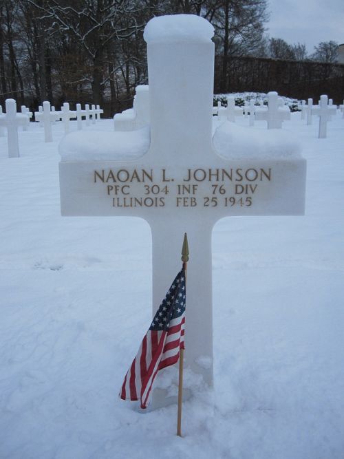 Pfc Naoan L. Johnson graduated from Farragut High School in 1942.Source of information: André Koch, www.abmc.gov, www.wwiimemorial.com, www.archives.gov – WWII Enlistment Record, www.ancestry.com - 1930 Census / Headstone and Interment Record / Cook County, Illinois Birth Index 1916-1935, http://76thdivision.com/304/history_304th_004.html