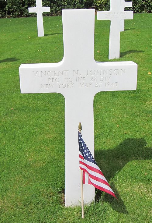 Pfc Vincent N. Johnson was employed by the Remington Arms Company.He enlisted at Fort Dix, New Jersey on 1 June 1944 and was sent overseas in November 1944.