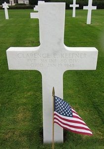 Pvt Clarence E. Keefner was a student before he enlisted in Huntington, West Virginia on 30 June 1944.On 19 January, G Company was dug in, in the vicinity of Ettelbruck. A patrol with 2 officers and 33 enlisted men was sent out at 2400. The patrol encountered a mine field at 0200 and suffered a number of casualties. Probably Pvt Keefner was one of the casualties.