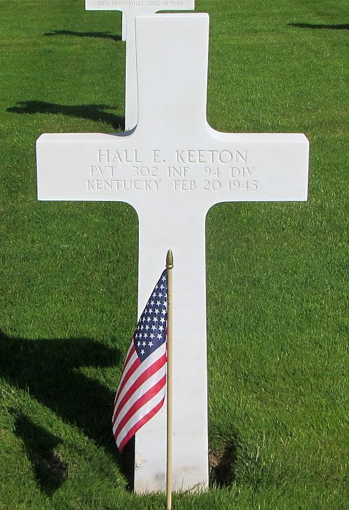 Pvt Hall E. Keeton was a driver before he enlisted in Louisville, Kentucky on 10 December 1943.He is remembered at the Christian Chapel Cemetery in Peytonsburg, Cumberland County, Kentucky.