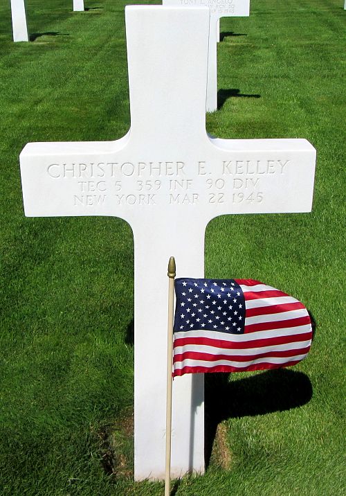 T/5 Christopher E. Kelley joined the Regular Army in June 1940 and was sent overseas in February 1943.Three months after he was transferred from an ordnance unit to an infantry unit of the 90th Division, he was killed by a sniper.