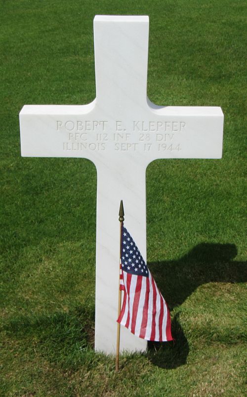 Pfc Robert E. Klepfer graduated from the Spalding Institute in 1930 and was employed with his father in the American Freight Lines and the American Transport Service of Peoria.He enlisted in 1943 and was sent overseas by May 1944.