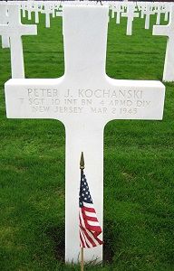 T/Sgt Peter J. Kochanski enlisted at Fort Dix, New Jersey on 10 February 1942.Source of information: André Koch, www.abmc.gov, www.wwiimemorial.com, www.ancestry.com - 1920/1930/1940 Census / Headstone and Interment Records / McDonald Family Tree