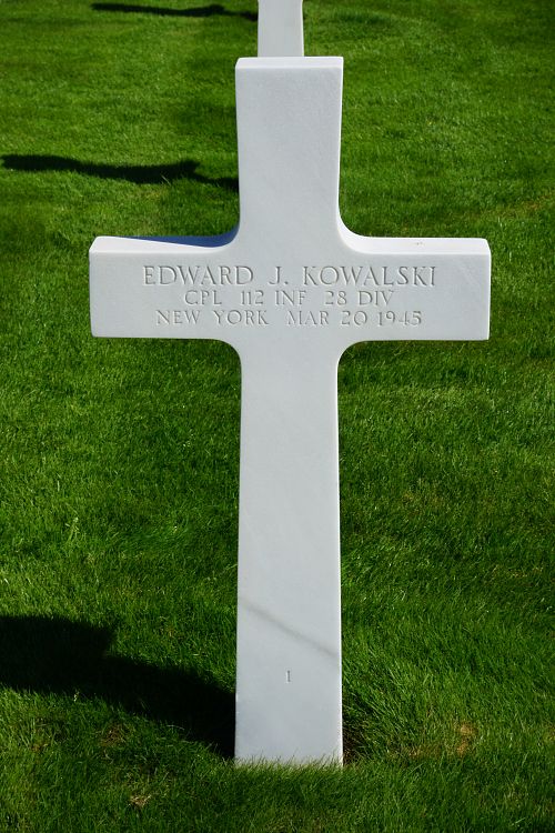 Cpl Edward J. Kowalski was a bartender before he enlisted at Fort Niagara, Youngstown, New York, on 17 March 1942.Source of information: Peter Schouteten, TerryHirsch, www.abmc.gov, www.wwiimemorial.com, www.archives.gov – WWII Enlistment Record, www.ancestry.com - Headstone and Interment Record / 1930 Census, www.findagrave.com – Russ Pickett, WWII Draft Card