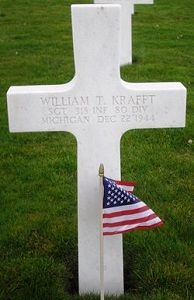 Sgt William T. Krafft attended high school for two years and was employed by the United Trucking Service Inc.Source of information: Leo Minne, www.abmc.gov, www.wwiimemorial.com, www.ancestry.com - Headstone and Interment Record / 1930/1940 Census / U.S. WWII Hospital Admission Card Files / U.S. Draft Cards Young Men, www.80thdivision.com