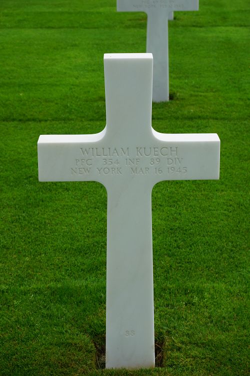 Pfc William Kuech was married to Bernice Brown on 29 November 1935.He enlisted at Camp Upton, Yaphank, New York on 27 March 1944 and was overeas for only two months when he was killed.