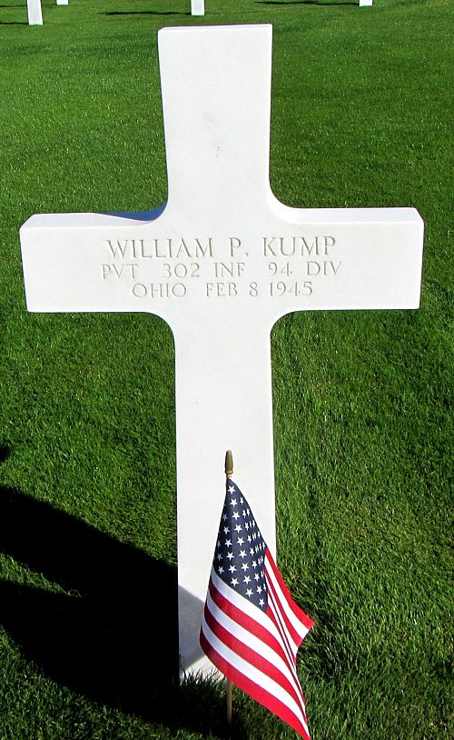 Pvt William P. Kump attended high school for 2 years and was an engineer stationary before he enlisted in Fort Benjamin Harrison, Indiana on 13 May 1944.Source of information: Peter Schouteten, Terry Hirsch, www.abmc.gov, www.wwiimemorial.com, www.archives.gov - WWII Enlistment Record, www.ancestry.com - Headstone and Interment Record / 1940 Census, http://www.94thinfdiv.com, WWII Draft Card