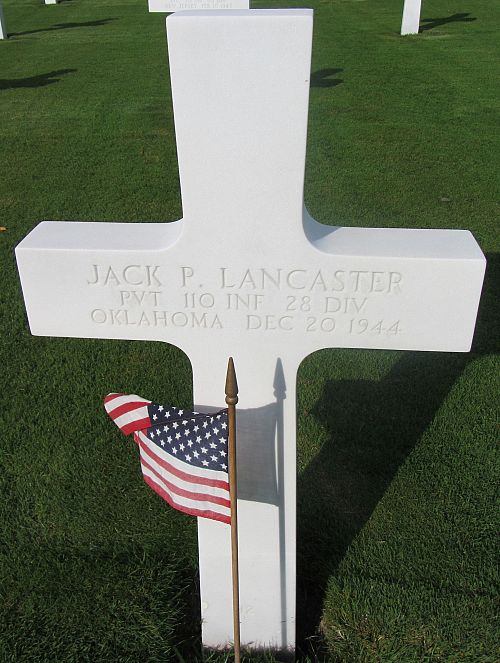 Pvt Jack P. Lancaster worked on a farm before he enlisted at Fort Sill, Oklahoma on 6 April 1944.Source of information: Peter Schouteten, www.abmc.gov, www.wwiimemorial.com, www.archives.gov – WWII Enlistment Record, www.ancestry.com - Headstone and Interment Record, www.findagrave.com