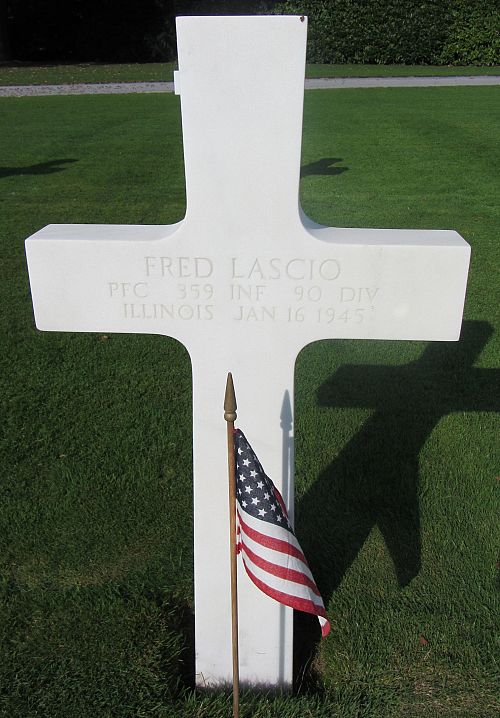 Pfc Fred Lascio was first buried at the Temporary American Military Cemetery in Grand Failly, France.Source of information: Peter Schouteten, Lillian Yazzie, www.abmc.gov, www.wwiimemorial.com, www.ancestry.com - Headstone and Interment Record / Valore Lascio Family Tree