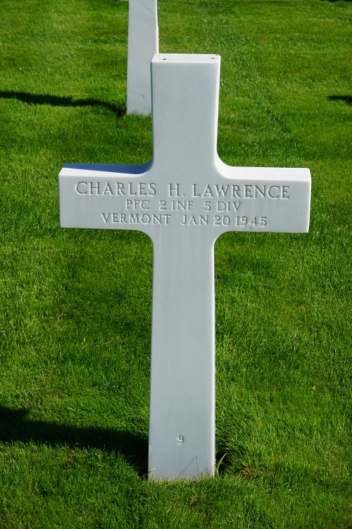 Pfc Charles H. Lawrence enlisted in Rutland, Vermont on 22 November 1943.He attended 1 year at the Black River High School in Ludlow and worked on a farm before he enlisted.