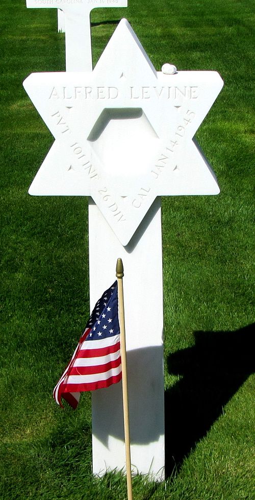 Pvt Alfred Levine attended high school for one year and was a tinsmith, coppersmith and sheet metal worker before he enlisted at Fort MacArthur, California on 3 January 1942.Source of information: Peter Schouteten, www.abmc.gov, www.wwiimemorial.com, www.archives.gov – WWII Enlistment Record, www.ancestry.com - Headstone and Interment Record / U.S. WWII Draft Cards Young Men / 1940 Census, www.fold3.com – 26th Infantry Division