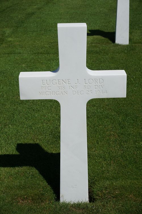 Pfc Eugene J. Lord attended high school for one year and was a truck driver employed by Excello Corporation before he enlisted on 21 April 1941. He was sent overseas in October 1944.He was killed by artillery shell fragments in his foot and abdomen.