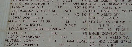 Pfc Loschiavo’s name is recorded on the Walls of the Missing at Luxembourg American Cemetery. A rosette will be placed next to his name to indicate he has been accounted for.