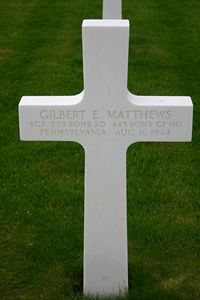 Sgt Gilbert E. Matthews graduated from Youngwood High School in 1939. He was employed by the Pennsylvania Railroad.He enlisted in the Army Air Corps and left on 2 March 1942, for training in mechanics at the Aviation and Air College, Dallas, Texas, from where he was transferred to Harlingen Army Air Force Gunnery School, then to Weston Field, Mass., for advanced training. He was sent overseas on 21 June 1944.