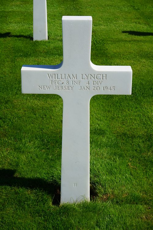 Pfc William Lynch attended high school for 4 years and was a painter before he enlisted at Fort Dix, New Jersey on 24 May 1944.Source of information: Peter Schouteten, Danny van der Groen – Company’s / 4ID After Action Reports, www.abmc.gov, www.wwiimemorial.com, www.archives.gov – WWII Enlistment Record, www.ancestry.com - Headstone and Interment Record / 1920 Census, www.findagrave.com