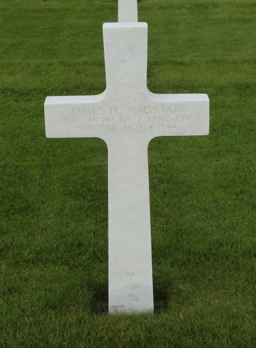 Pvt James H. Wagstaff James enlisted in February 1944 and was sent overseas in August 1944.He is commemorated on a monument unveiled in Ospel, the Netherlands on 6 November 2019 in memory of the American soldiers who fell during the liberation of the town.