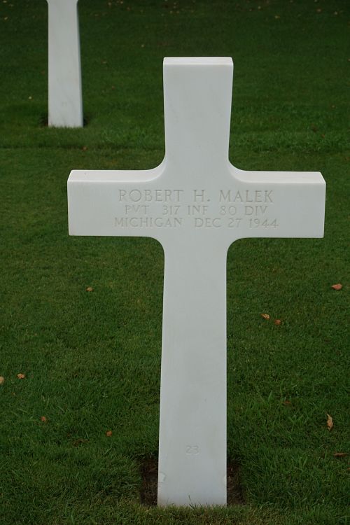 Pvt Robert H. Malek was sent overseas in October 1944.He was reported seriously wounded in action and evacuated to the 60th Field Hospital on 26 December, which was operating in the vicinity of Bissen.